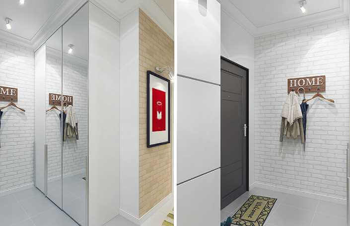 Белый кирпич в интерьере прихожей идеален для маленьких помещений