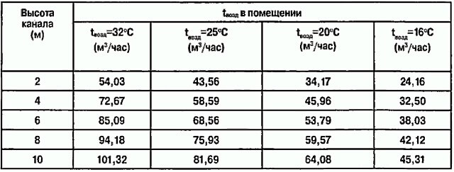Впрочем, для каналов вентиляции такого же сечения (204 см2), но выполненных из других материалов, производительность будет отличаться от указанной в таблице незначительно. Для канала другого сечения величину производительности из таблицы допустимо пропорционально увеличить или уменьшить.