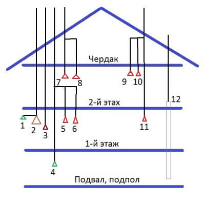 В частном доме число каналов невелико, поэтому объединять потоки воздуха из нескольких каналов (помещений или этажей) в один, как это часто делают в многоквартирных домах, нет необходимости. Каждый канал естественной вентиляции в частном доме должен начинаться в помещении и заканчиваться в оголовке на крыше. Любое объединение двух и более каналов ухудшает работу вентиляции.