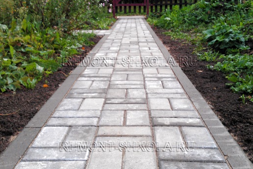 Мощение дорожек плиткой и брусчаткой из бетона, клинкера или камня