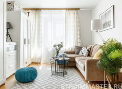 Чтобы не загромождать комнату разбросанными вещами, вам придут на помощь шкафы купе, которые можно расположить как вдоль стены, так и в углу. Изготовители корпусной мебели выполняют все пожелания покупателя, и вы сами можете продумать, сколько полок и какие вам нужны. Материал для изготовления используют разнообразный — от массива дерева до ДСП. В целях максимальной экономии пространства выбирайте раздвижные двери, они могут быть деревянные, стеклянные, зеркальные. Светлые тона зрительно увеличивают объем комнаты, это важно в маленьких помещениях.