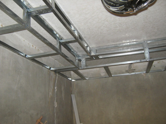 Такой каркас изготавливают, используя стальной или алюминиевый профиль. Используют 2 варианта профилей: направляющий и стоечный. Каркас получается надежным, не боящимся влаги, не требующим дополнительной защиты. Металлический каркас лучше всего подходит при работах в ванной комнате или на кухне.