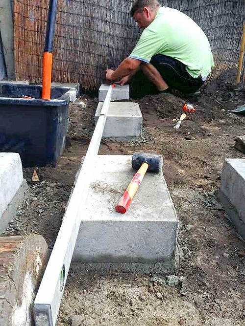 После окончания монтажа и выравнивания всех фундаментных блоков основную работу по подготовке фундамента можно считать сделанной. Однако это ещё не всё. Сначала необходимо дать схватиться раствору на который вы устанавливали блоки, а затем можно приступить к дальнейшей подготовке основания террасы.