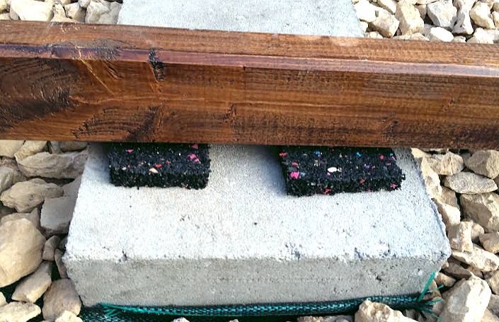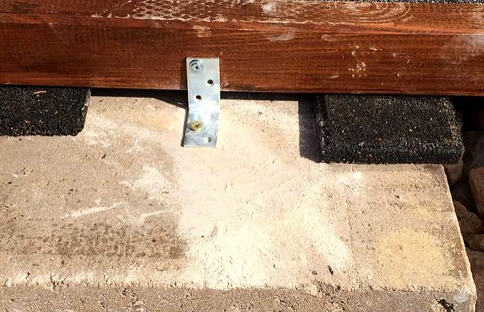 Установка лаг основания террасы производится на на резиновую прокладку.